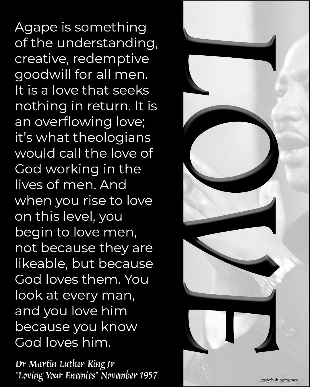 LoveA word from Dr. Martin Luther King Jr.Stephanie LoomisJan 17, 2023∙ PaidShareDefaulting to Grace is a reader-supported publication. To receive new posts and support my work, consider becoming a free or paid subscriber.SubscribeContinue reading this post for free, courtesy of Stephanie Loomis.Claim my free postOr purchase a paid subscription.PreviousNext