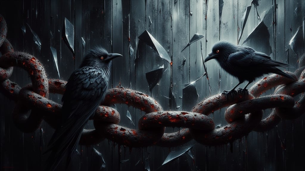 The shattered mirrors should have been a warning. The circling crows were an omen that no one saw. The chains, then, came as a surprise to the people as their red-eyed captors carried them away.
