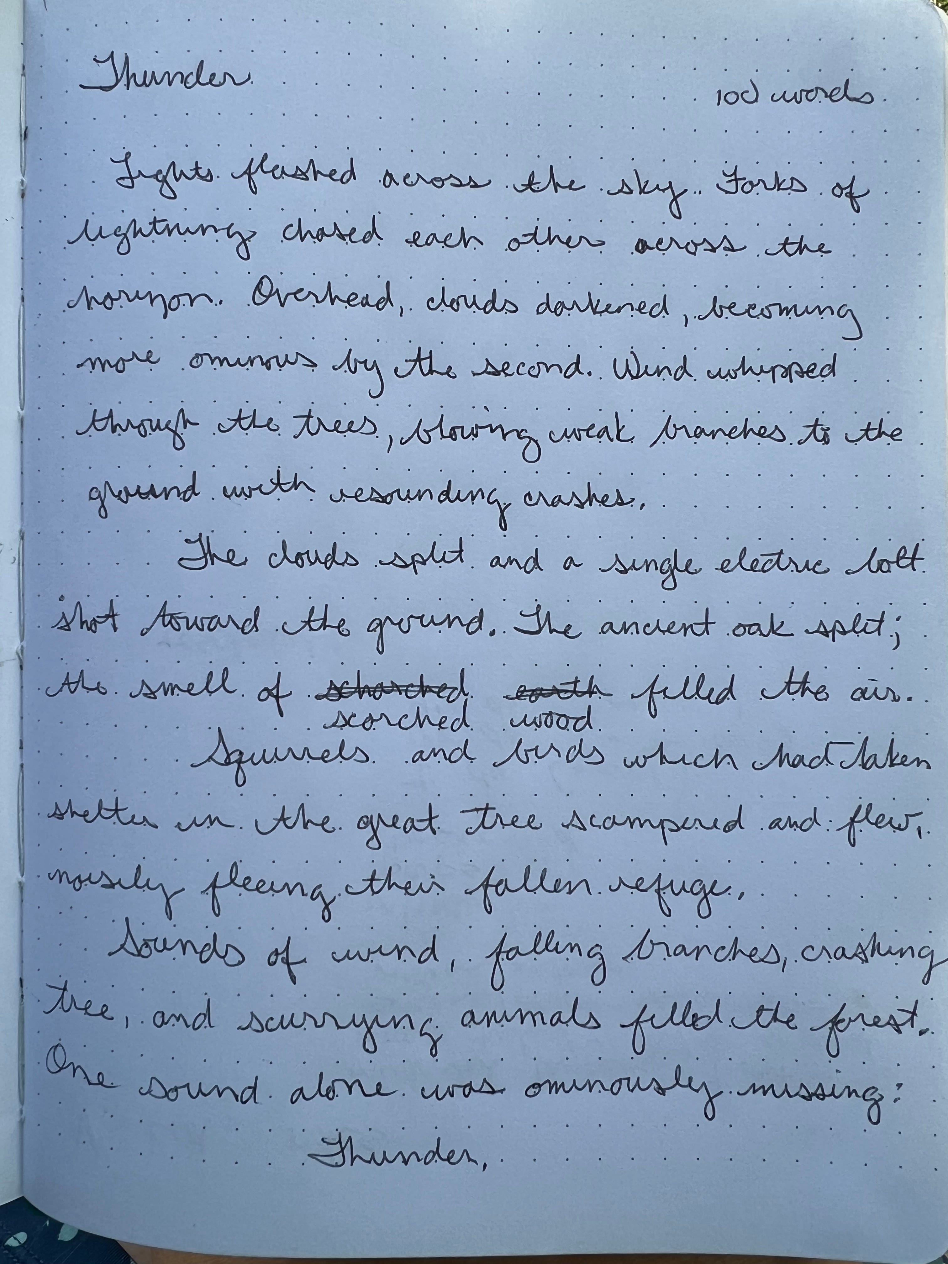 Here is my first 100–word, hand-written story for October 1